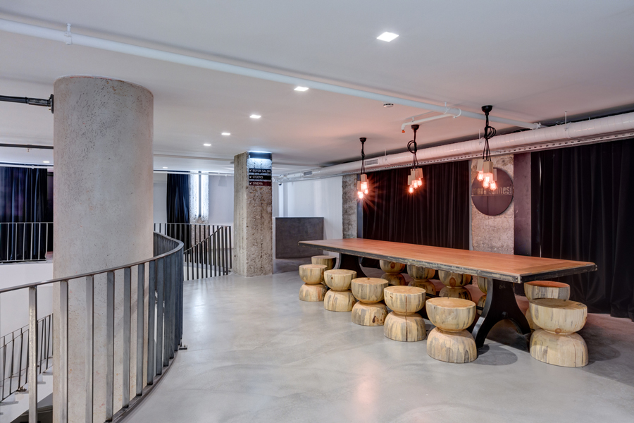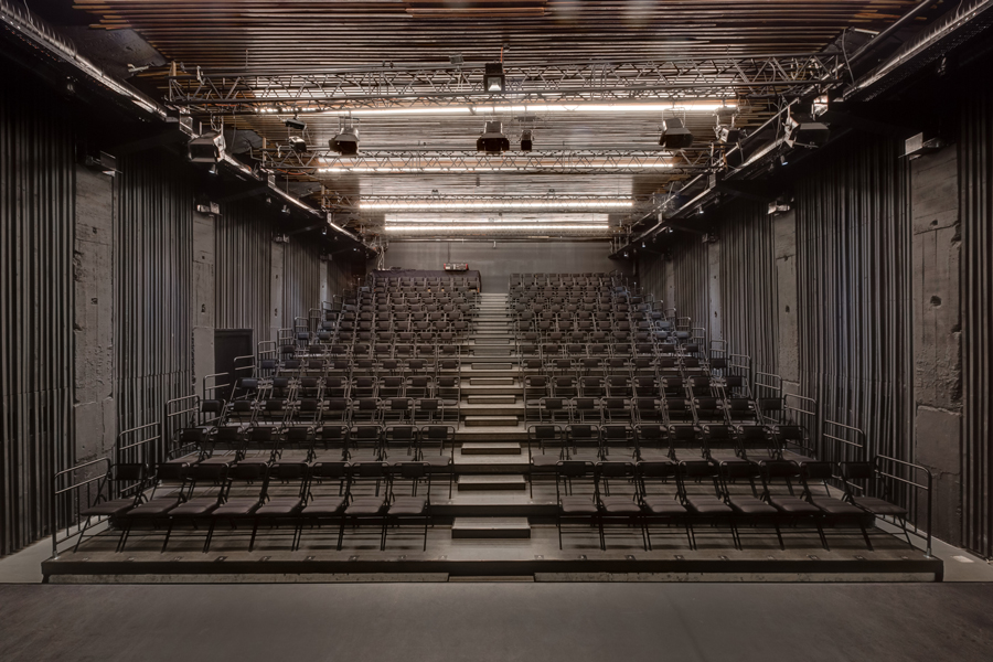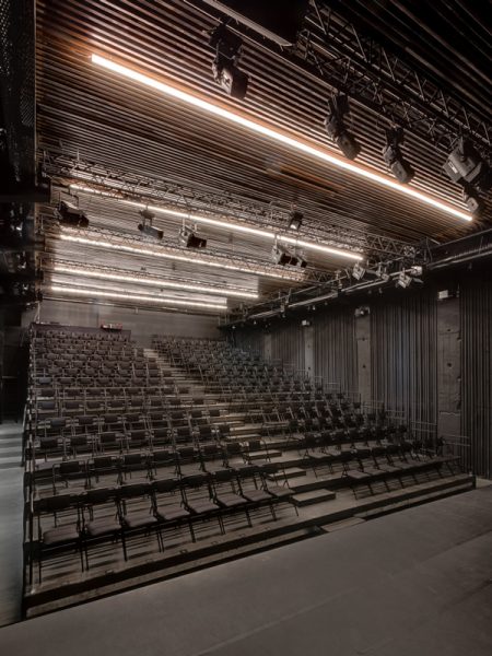 Moda Sahnesi Interior Design | Theatre Hall, Cinema, Cafe YEAR: 2013 LOCATION: İSTANBUL, TR SIZE: 1800 M2 CLIENT: MODA SAHNESİ PHOTO CREDIT: DEPİKT Kafkas Sineması (The Caucasian Cinema), when opened in 1969 was a valuable addition to the Moda cultural scene. It was converted into a theatre later on and operated under the name of the neighborhood it is located, Moda Sineması (Moda Cinema), from 1984 to 2000. 12 partners got together to convert the unused cinema building back into a theatre and cultural center with the name, Moda Sahnesi (Moda Stage). The construction of the 1,830 m2 Moda Sahnesi began on January, 2013. Besides the main stage, the cinema and the workshop spaces, there is a café, grand foyer and technical/service areas inside the theatre building. One of the most significant and grandiose details of the architectural interference in the space is the 3×3 m. single piece, glass surface that separates the workshop room from the grand foyer. This glass surface can be transparent or mirror-like allowing the room to be used for workshops or rehearsals or as a space for pre-main set plays or smaller theatre pieces. The concept behind this design is what the partners envisioned–an area allowing for alternative perspectives by letting the performances and plays to spread to or start from unexpected and unaccustomed points.The main stage salon turns into a 750 pax performance area from a 295 pax seated set-up for plays, due to its creatively designed tiered seat stands. The stage can also be adjusted to custom sizes for each play, providing a flexible format. The design approach of the architects and the partners in this space is bringing out the best with minimal interference, flexible utilization and a space that takes shape in interaction with their users. 1969 yılında İstanbul Moda’nın önemli bir kültür kurumu olarak kurulan Kafkas Sineması’nın işlevini kaybetmesiyle 12 ortak tarafından hayata geçirilen bir proje olan Moda Sahnesi, 1984 yılından itibaren 2000’li yıllara kadar Moda Sineması olarak kentsel bellekte bulunuyor. Moda Sahnesi 2013 yılında açıldı ve hala tiyatro, sinema ve konferans etkinliklerine bir kültür platformu hizmeti vermektedir. İnşaatına Ocak 2013’te başlanan Moda Sahnesi 1830 m2’lik bir alana sahip. Büyük salon, sinema ve atölye gibi ana işlev mekanları haricinde kafe, fuaye ve teknik/servis alanları da bulunuyor. Mekana yapılan etkili mimari müdahalelerden biri; fuaye ile atölye arasındaki yekpare 3x3m cam yüzey olarak nitelendirilebilir. Bu transparan hem de opak olabilen yüzey; atölye, oda tiyatrosu ya da prova alanı olarak kullanılabilen mekanın, fuayeden izlenmesine olanak veriyor. Büyük salon, teleskopik tribün sayesinde 295 kişi kapasiteli koltuklu düzenekten, ayakta yaklaşık 750 izleyicili bir performans alanına dönüşebiliyor. Aynı mahalde bulunan sahnenin de ölçüleri değiştirilerek salonda esnek oyun düzenine katkıda bulunuyor. İşverenin istediği şey ve kurgu; aslında mekanın yaşayacağı süreçlerde “performans” / “oyun”ların, tanımlı mekanlar dışındaki noktalara da yayılıp sıçraması ve başka izleme/izlenme fikirlerine ihtimal tanıması. desıgn Gamze İşcan – Bilge Kalfa Team Ceren Kılıç Acoustıcal Consultant Nielsen Akustik Contractor Moda Sahnesi